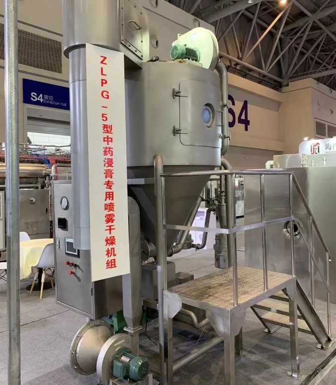 ZLPG-5型中药浸膏专用喷雾干燥机组:中药浸膏是由植物根、茎、叶提取而成。普通的离心喷雾干燥机已无法满足此类产品的干燥要求,公司进过精密、反复的工艺计算和无数次的实验,开发出了中药浸膏专用喷雾干燥机组,并推广到了一些知名药厂使用。